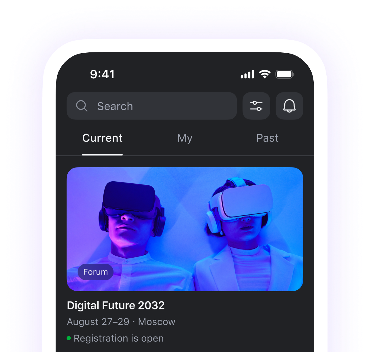 You & Events is a professional solution for all types of events of any scale and format: from conferences and exhibitions to sporting events and webinars. We offer tools for hybrid, offline and online events so that you can focus on the main thing – creating a unique event for your participants.